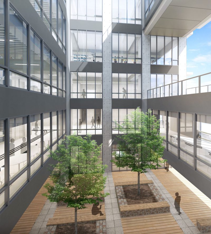 ・3号館と興風館を一体と捉え、中央に6層吹抜けのプラザを設けます。